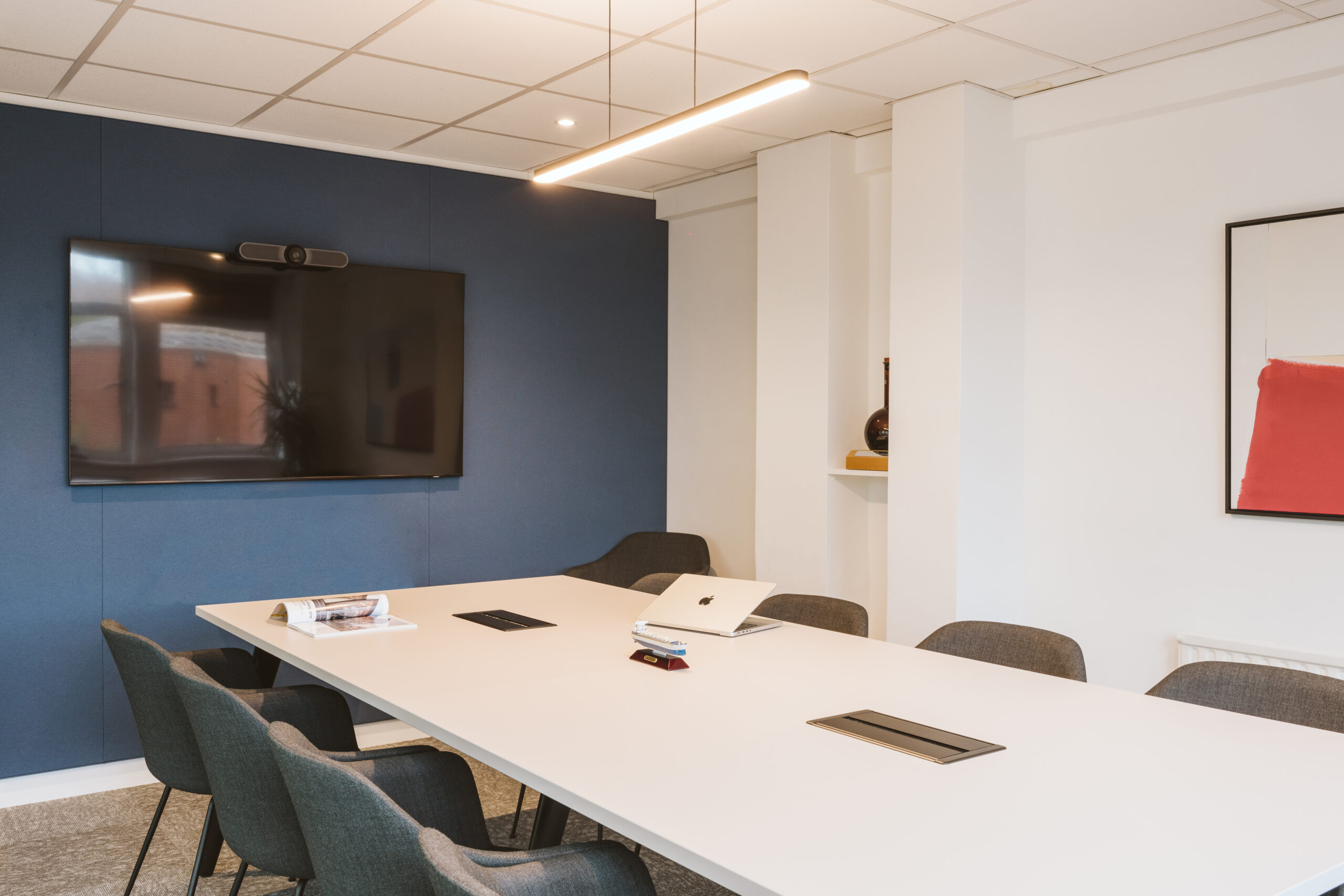 We then rebuilt their existing boardroom with acoustic glazing and a new door to enhance sound control. Changing its orientation allowed the room to work more effectively within the floorplate, with a new partition between the entrance and boardroom to improve privacy and strengthen the arrival experience with space for branding.