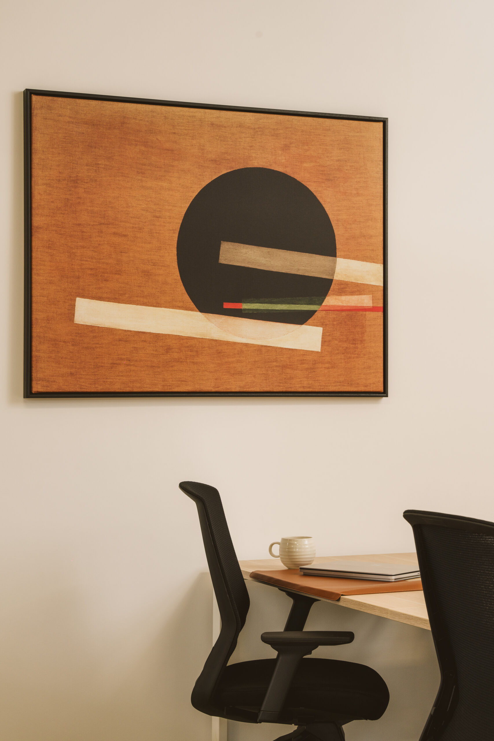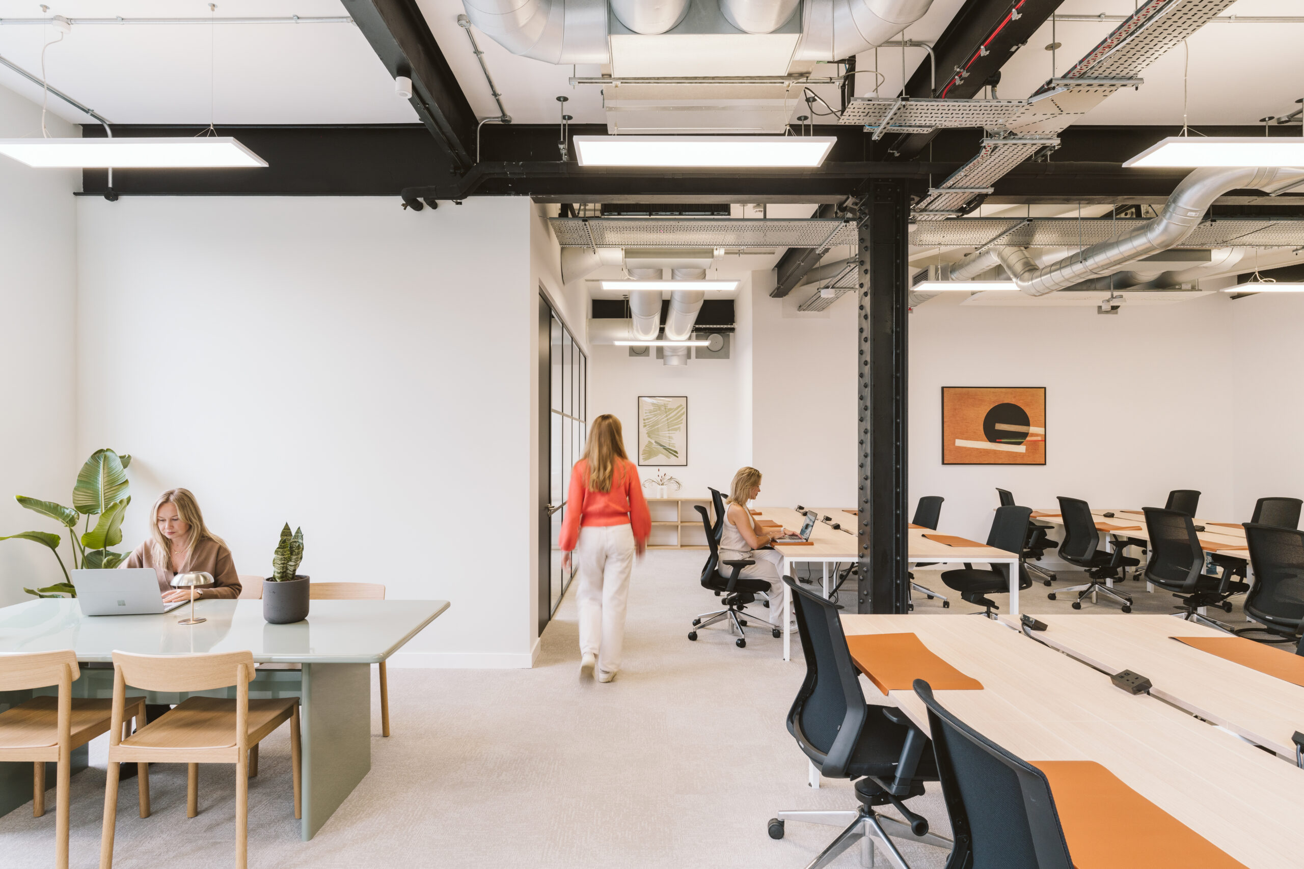 New furniture from OW-N, including desks, breakout pieces, and seating, were introduced to support flexible working. Muted tones of soft greens, oranges, and natural neutrals were applied throughout, complemented by styling elements and desk accessories for a warm, lived-in feel.